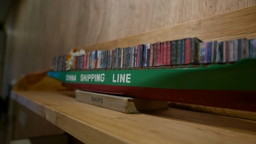 Chris was also influenced by Watchet’s connection to Coleridge’s ‘Rime of the Ancient Mariner’, which was referenced frequently in the exhibition—used to draw out a sense of the romantic seafaring tradition and contrast it with our more banal contemporary world of global consumer capitalism. “An image I found on the internet that has haunted me is that of a shipping container accidentally lost overboard. Like the wandering albatross it appears to be destined to drift forever.”