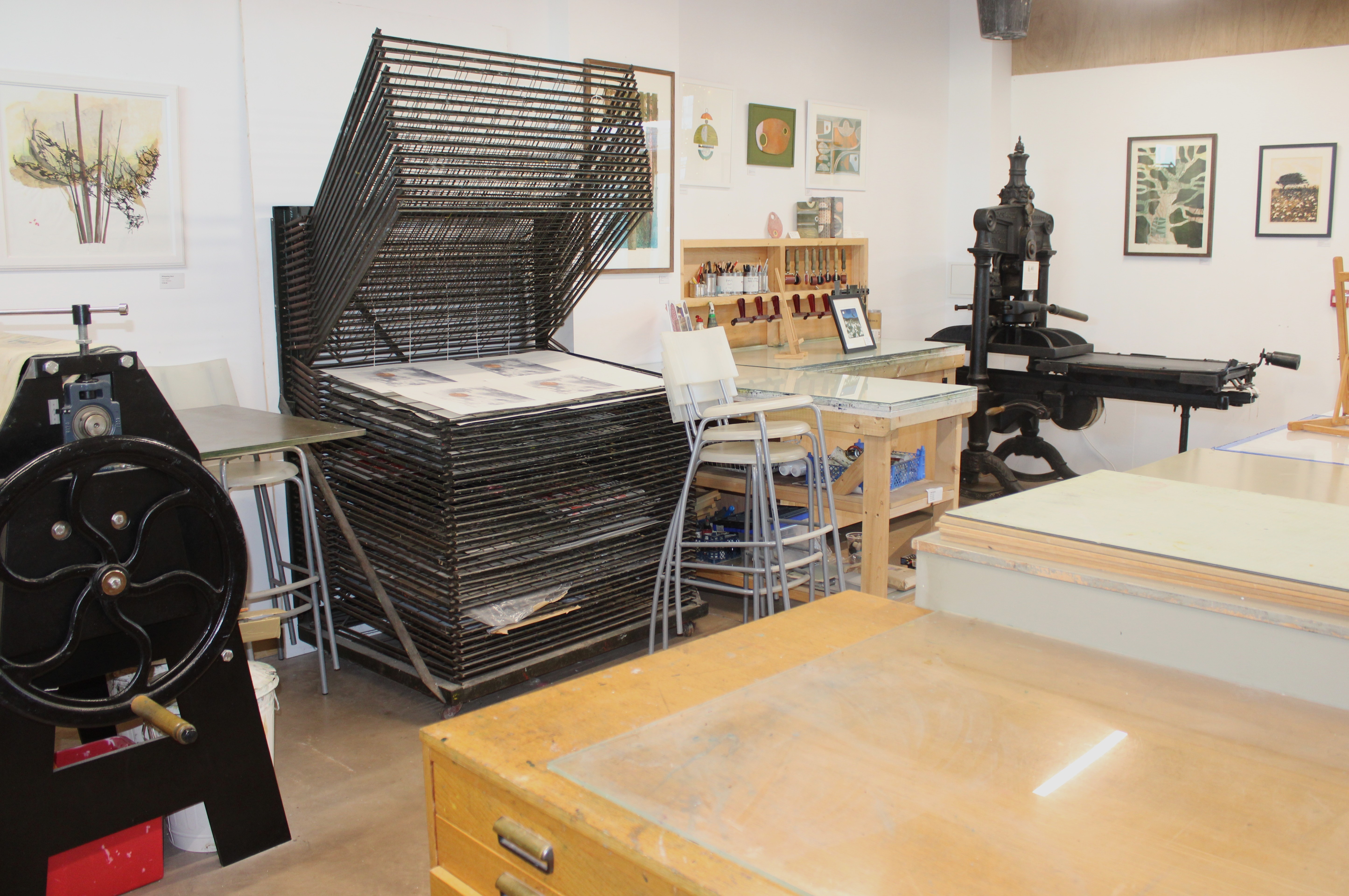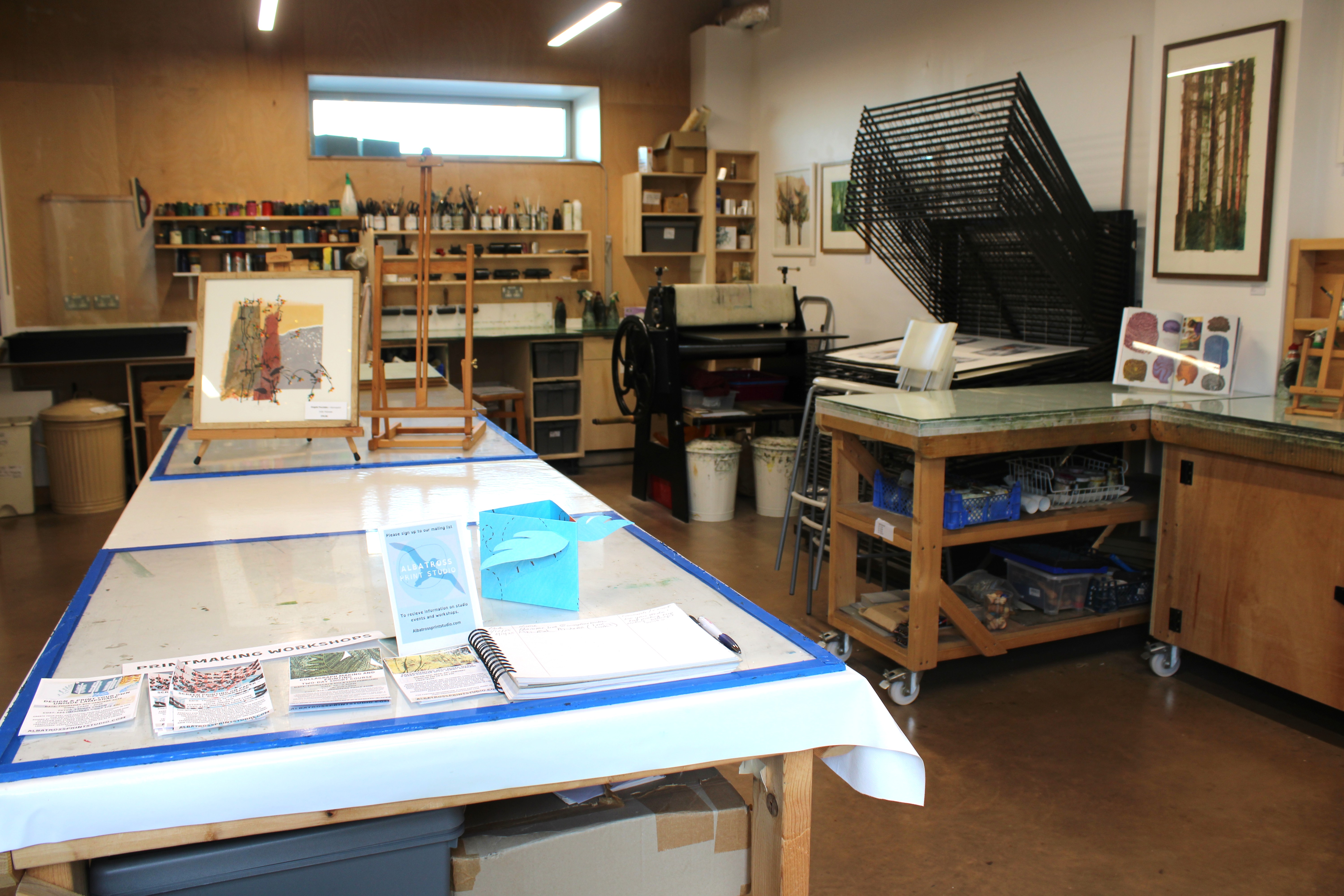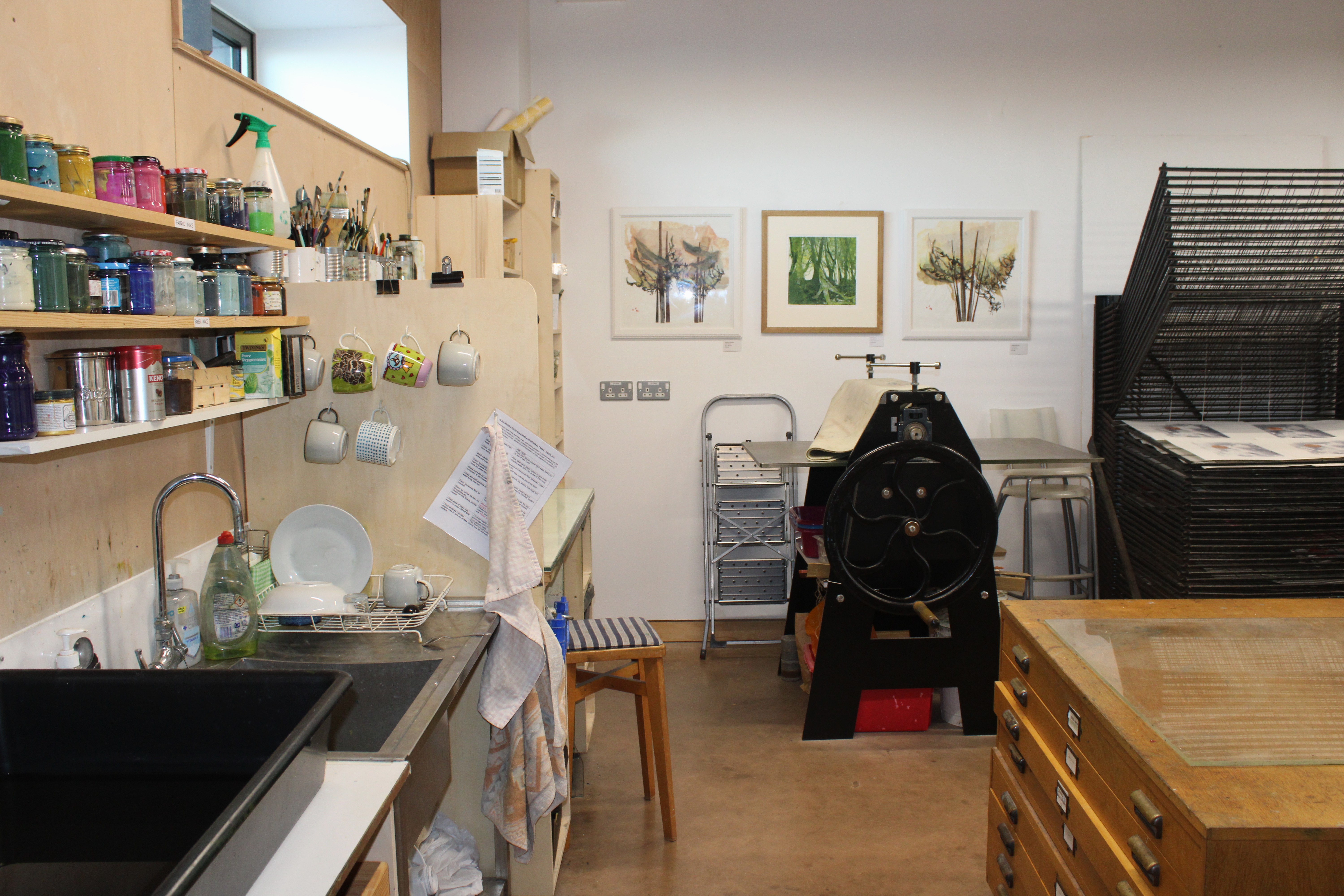 Please it to check the three print areas. If a print area is booked, it will appear on the calendar, ie ‘Etching booked’. If nothing is showing, then we should have availability. Please let us know which equipment you want to use, which date(s), and a rough arrival time. (Between 9am and 5pm unless otherwise agreed). Several times a year, the studio runs exhibitions and will not be available for open access during these times.