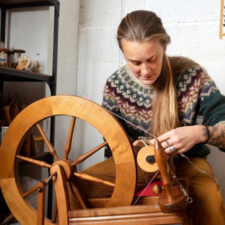 Local shepherd, spinner and weaver, Bec Briar, will be based in Studio 10 Project Space this Spring. During the residency, Bec will be working with wool that’s been hand sheared from her own sheep, using natural dyes and inks to hand spin and weave textiles that celebrate the local landscape.