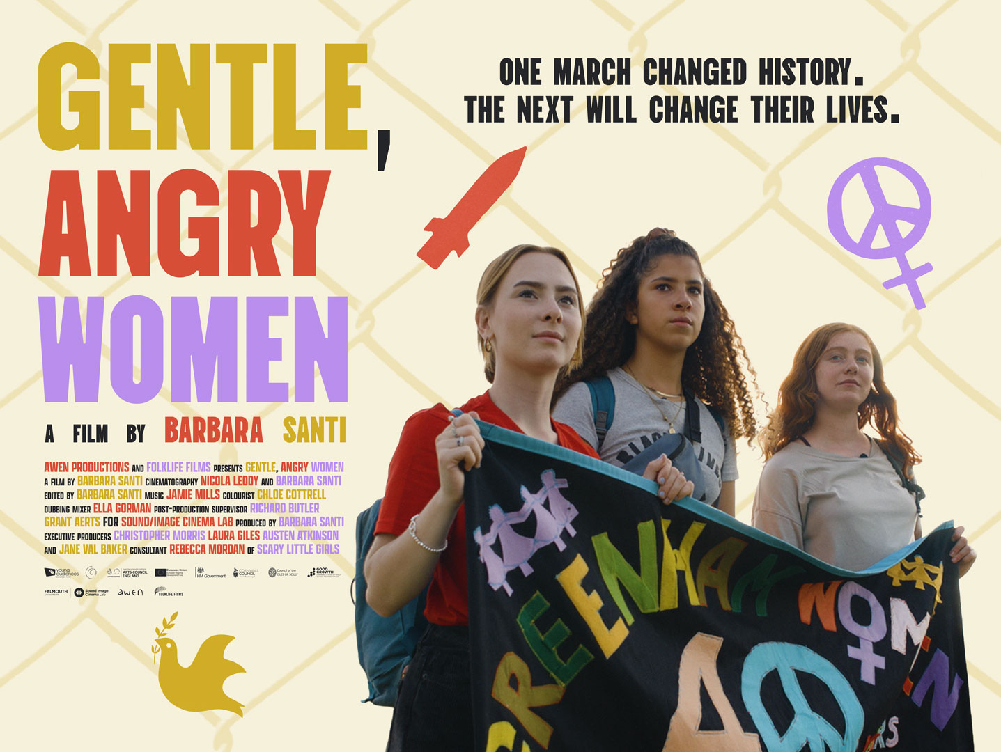 Come along to the East Quay Kitchen at 7pm on Monday 10th November for a screening of Gentle, Angry Women, a coming-of age documentary following three young activists as they trace the legacy of Greenham Common Women's Peace protest, forty years on.