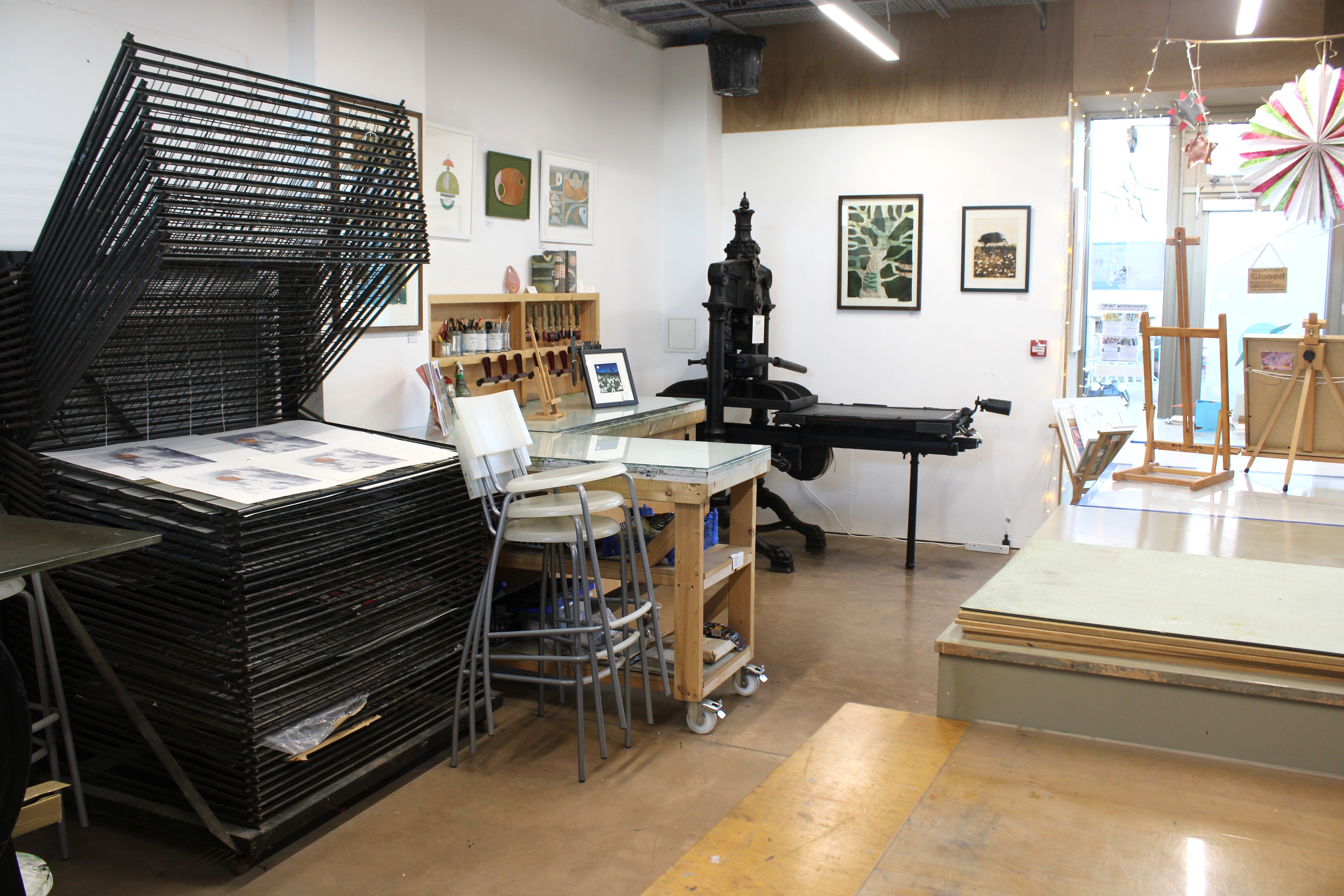 The studio is equipped to support intaglio, relief and silkscreen printmaking, and offers a programme of open access sessions, workshops and membership. We welcome everyone from beginners to experienced printmakers, with an ambition for the studio to be a vibrant destination for discovering and exploring contemporary printmaking practice.